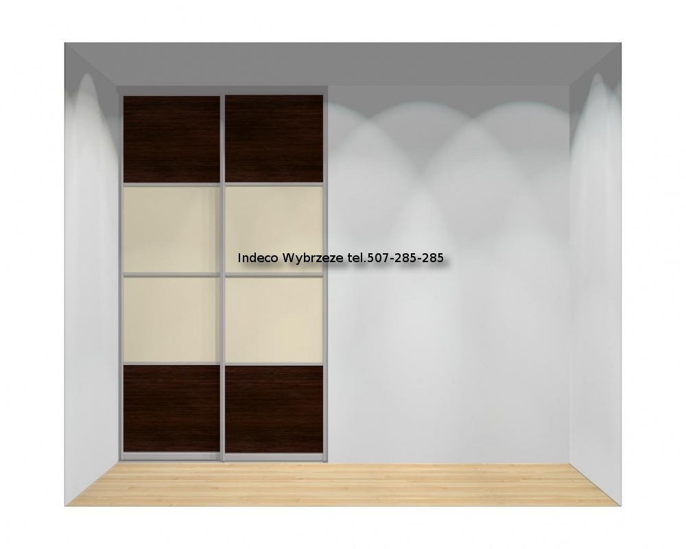 Drzwi przesuwane, 2-skrzydłowe do szaf o szerokości od 140 do 160 cm oraz wysokości od 240 do 263 cm.