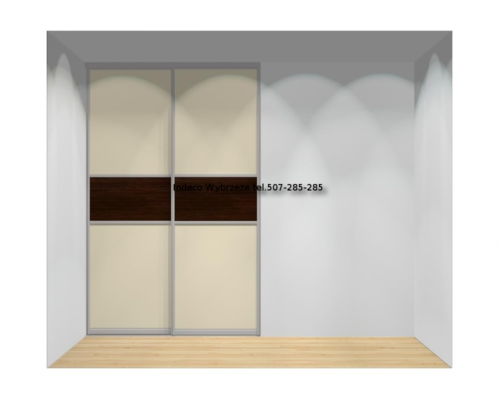 Drzwi przesuwane, 2-skrzydłowe do szaf o szerokości od 140 do 160 cm oraz wysokości od 240 do 263 cm.