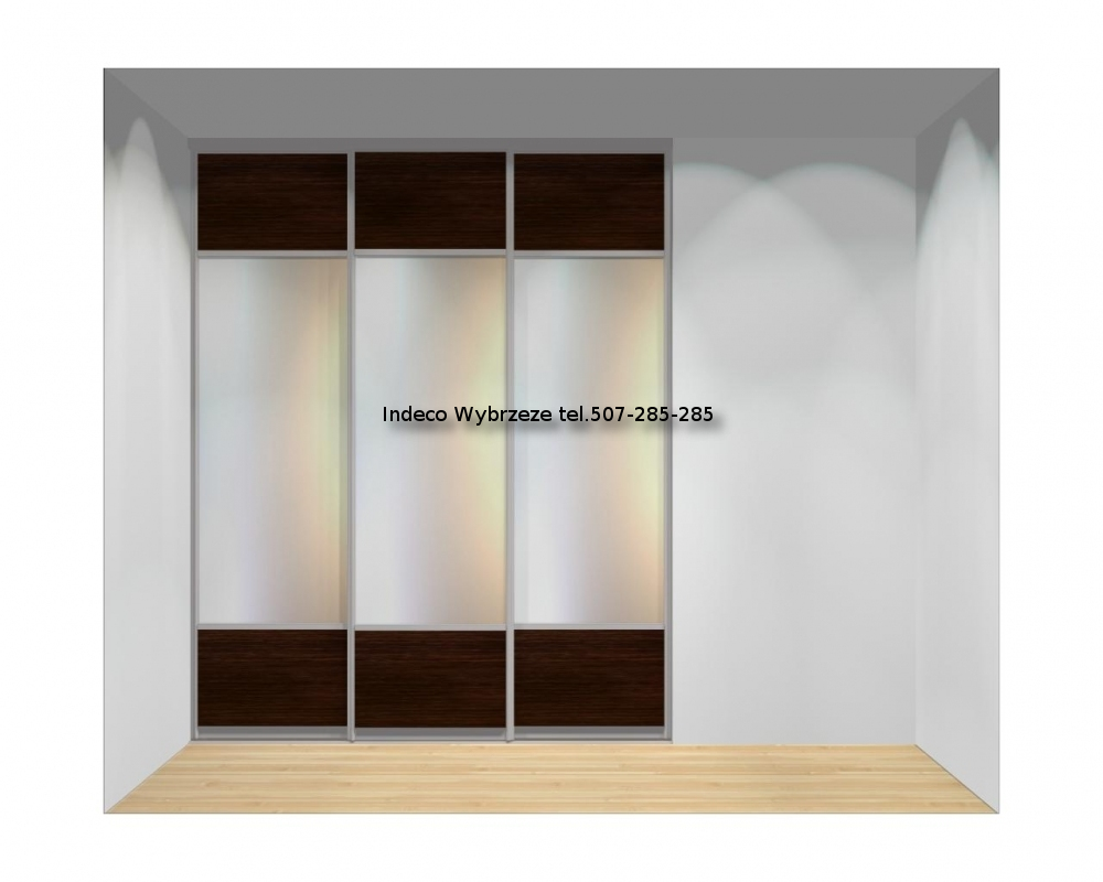 Drzwi przesuwane, 3-skrzydłowe do szaf o szerokości od 180 do 210 cm oraz wysokości od 240 do 263 cm.