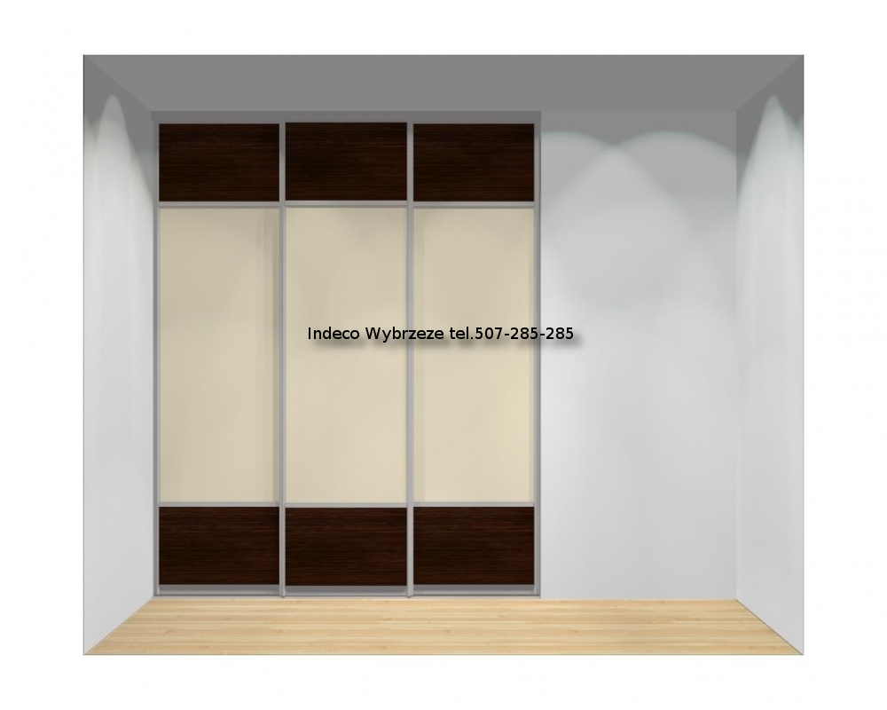 Drzwi przesuwane, 3-skrzydłowe do szaf o szerokości od 180 do 210 cm oraz wysokości od 240 do 263 cm.