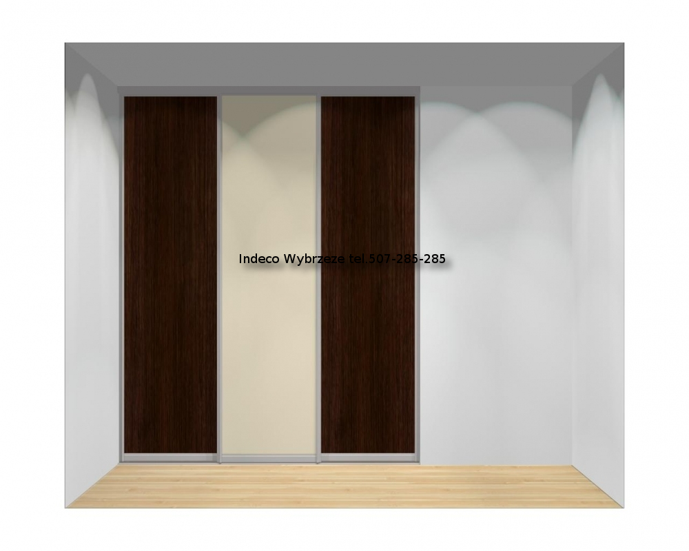 Drzwi przesuwane, 3-skrzydłowe do szaf o szerokości od 180 do 210 cm oraz wysokości od 240 do 263 cm.