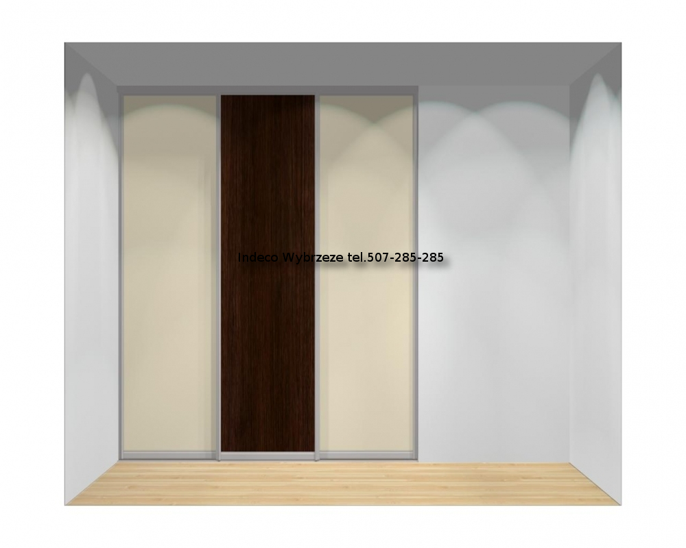 - jedno skrzydło z wypełnieniem z płyty meblowej, dwa skrzydła z wypełnieniem z kolorowego szkła.