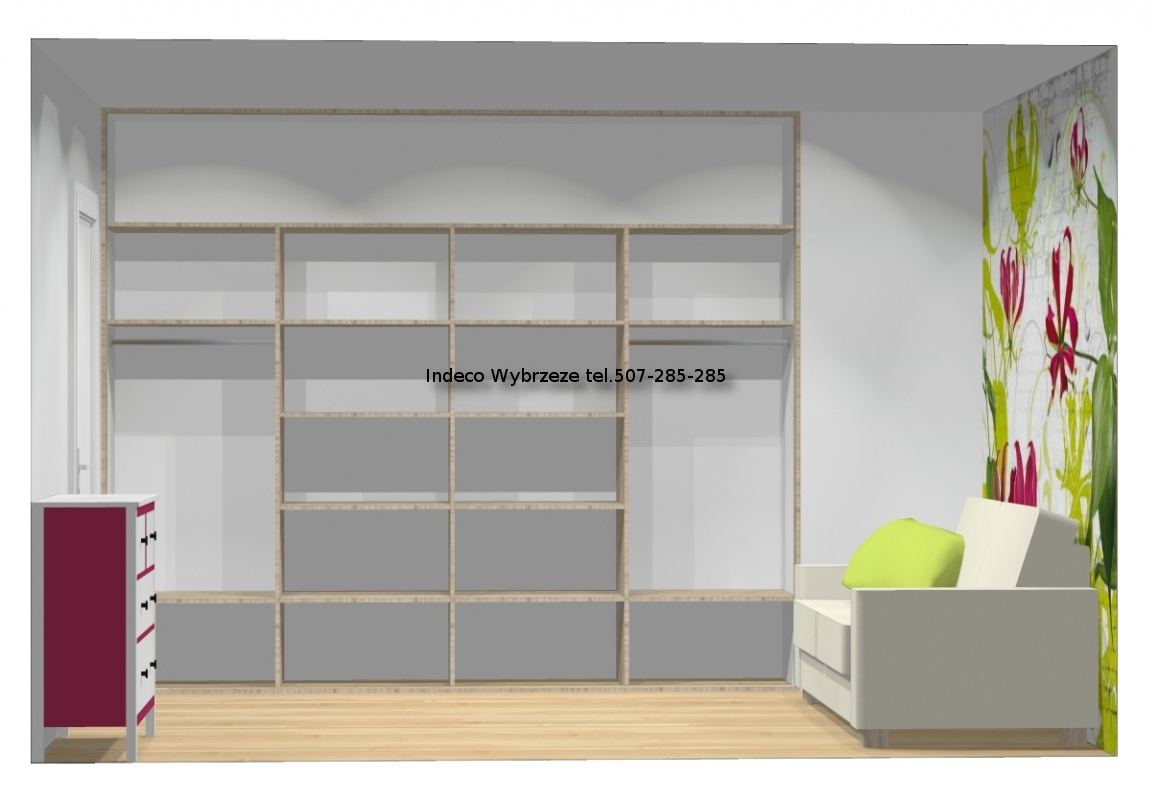 Zabudowa jest przeznaczona do użyktu z drzwiami przesuwanymi 4-skrzydłowymi.