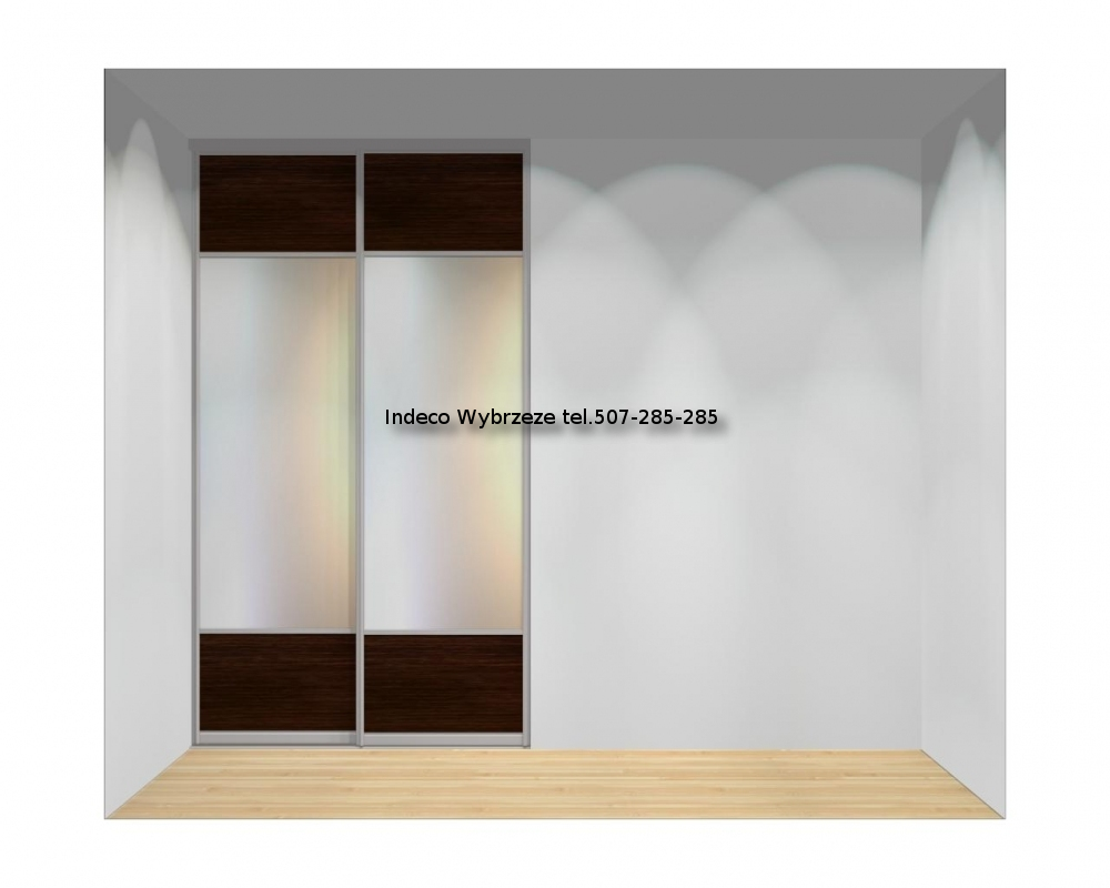 Dwa skrzydła z wypełnieniem z lustra srebrnego oraz wstawką z płyty meblowej