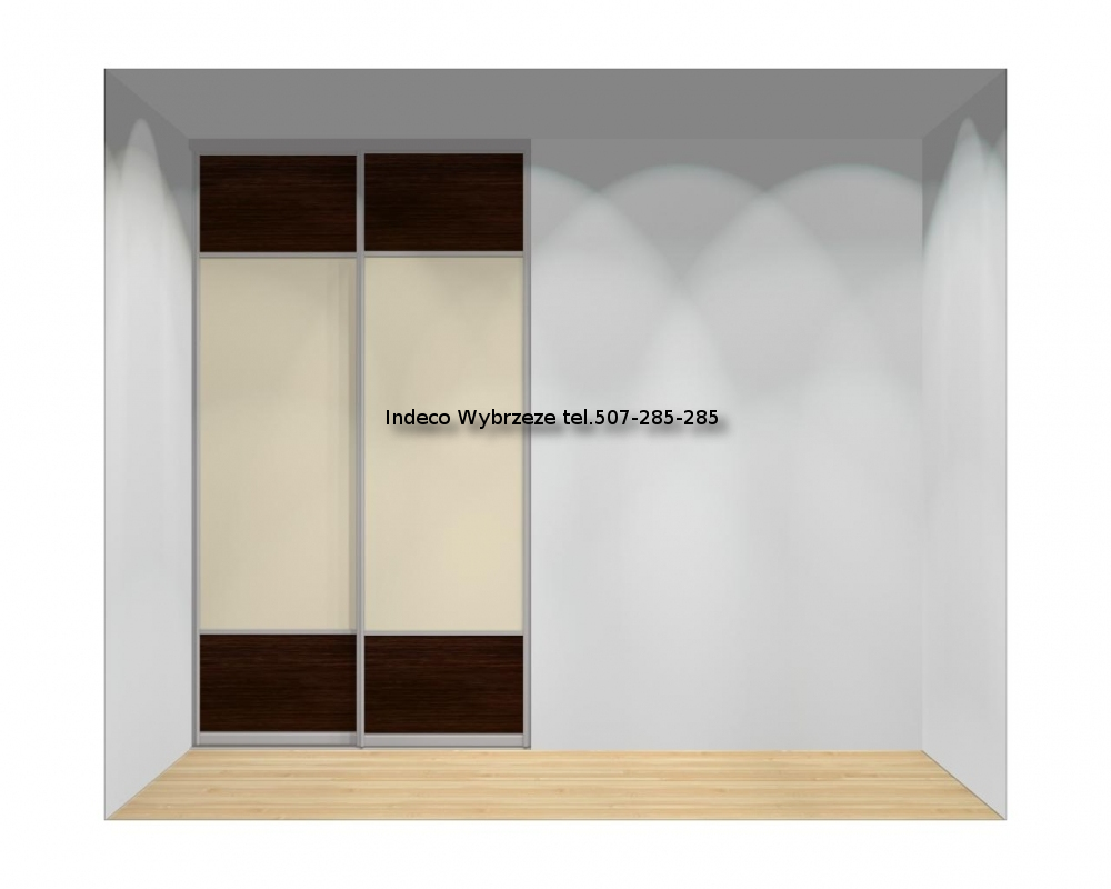 Drzwi przesuwane, 2-skrzydłowe do szaf o szerokości od 140 do 160 cm oraz wysokości od 240 do 263 cm.