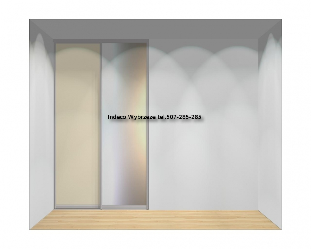 Drzwi przesuwane, 2-skrzydłowe do szaf o szerokości od 140 do 160 cm oraz wysokości od 240 do 263 cm.