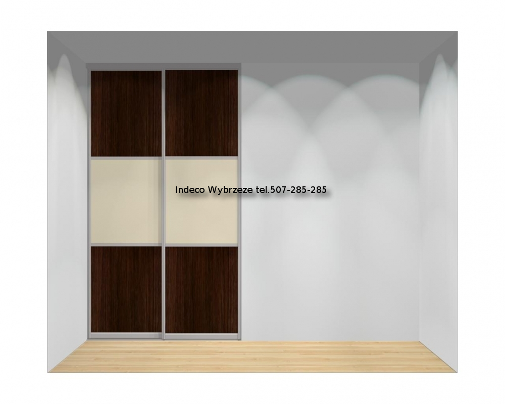 Drzwi przesuwane, 2-skrzydłowe do szaf o szerokości od 140 do 160 cm oraz wysokości od 240 do 263 cm.