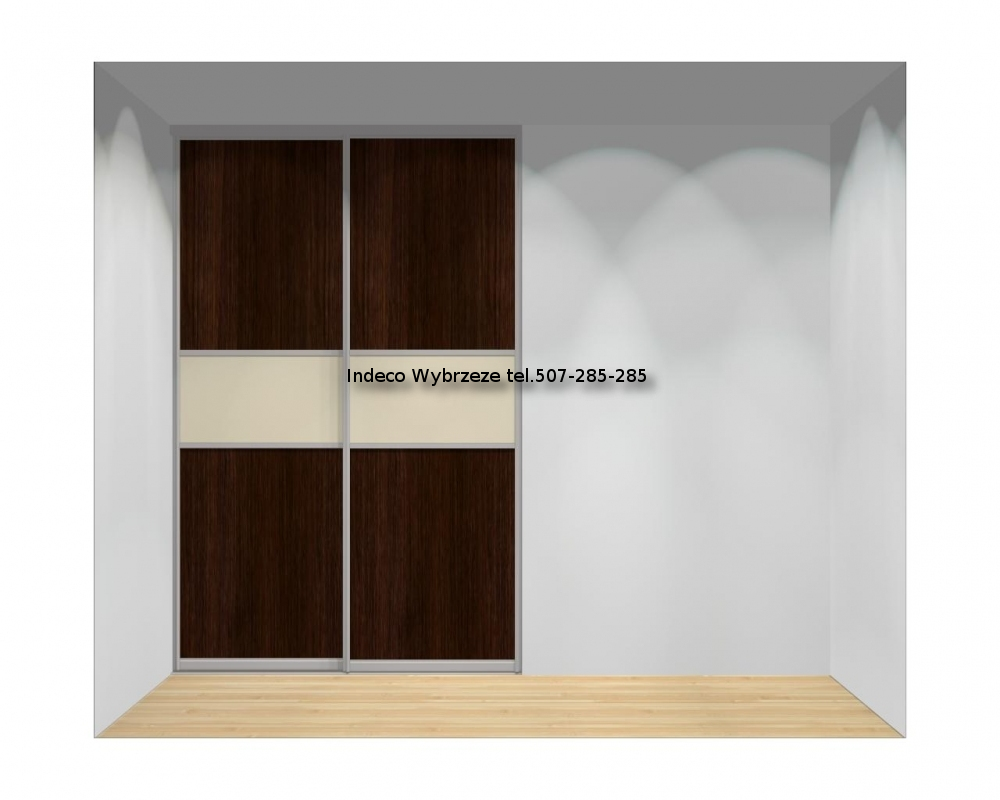 Drzwi przesuwane, 2-skrzydłowe do szaf o szerokości od 140 do 160 cm oraz wysokości od 240 do 263 cm.