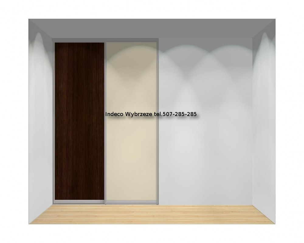 Drzwi przesuwane, 2-skrzydłowe do szaf o szerokości od 140 do 160 cm oraz wysokości od 240 do 263 cm.