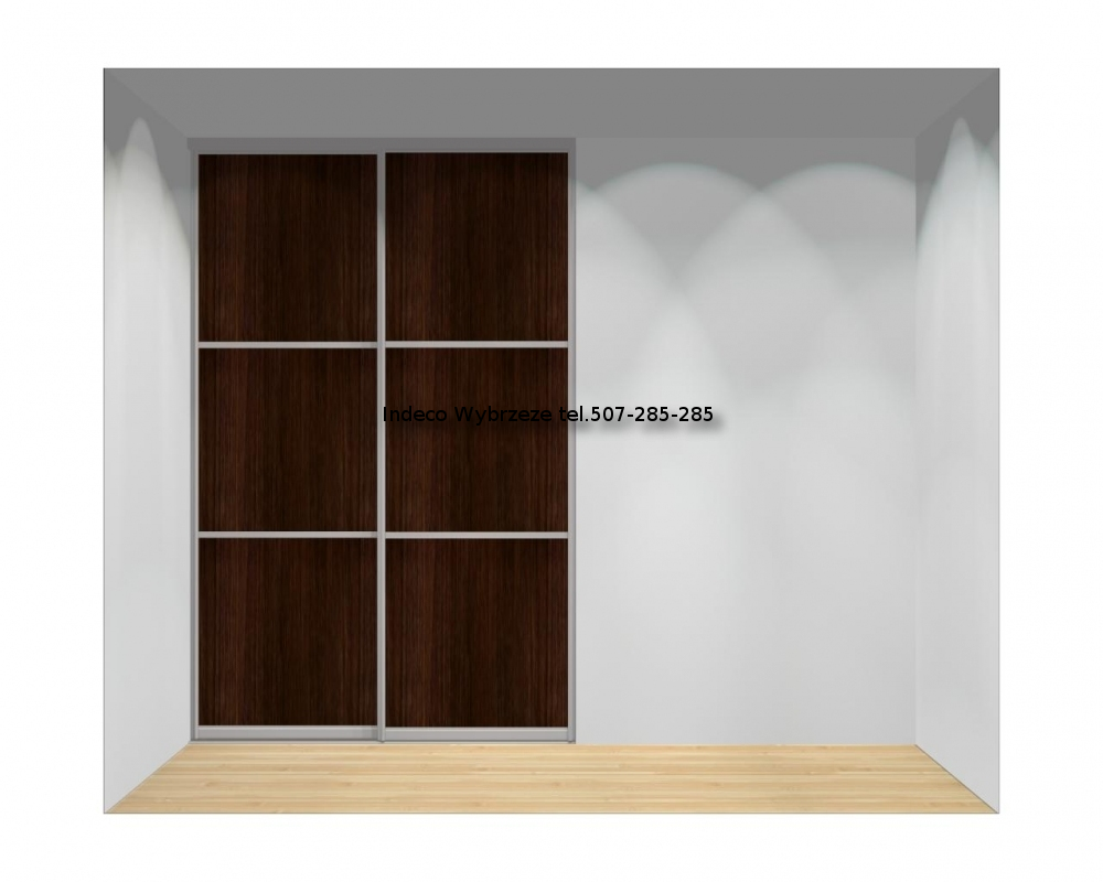 Drzwi przesuwane, 2-skrzydłowe do szaf o szerokości od 140 do 160 cm oraz wysokości od 240 do 263 cm.