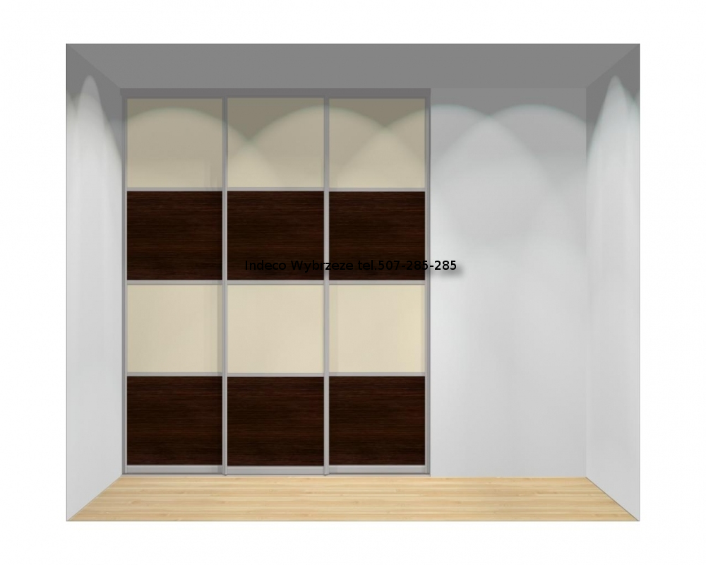 Drzwi przesuwane, 3-skrzydłowe do szaf o szerokości od 180 do 210 cm oraz wysokości od 240 do 263 cm.