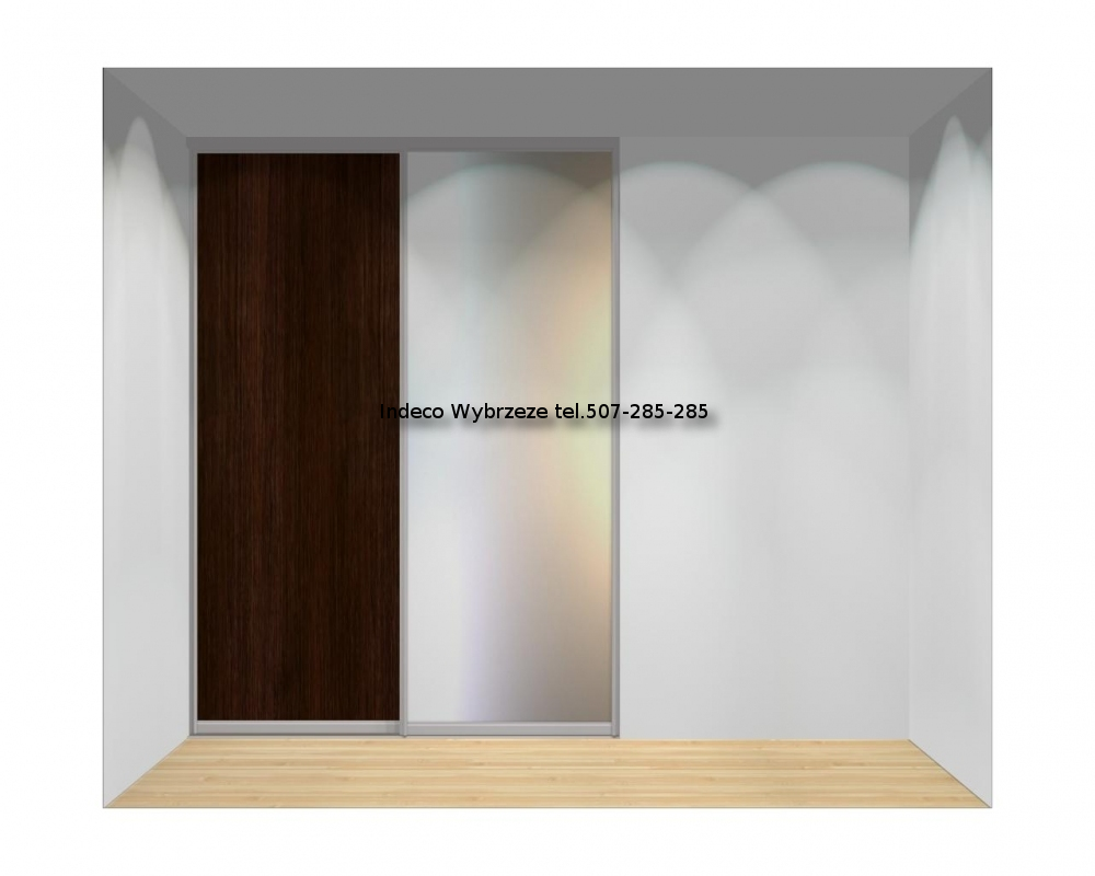 - jedno skrzydło z wypełnieniem z płyty meblowej, jedno skrzydło z wypełnieniem z lustra srebrnego.