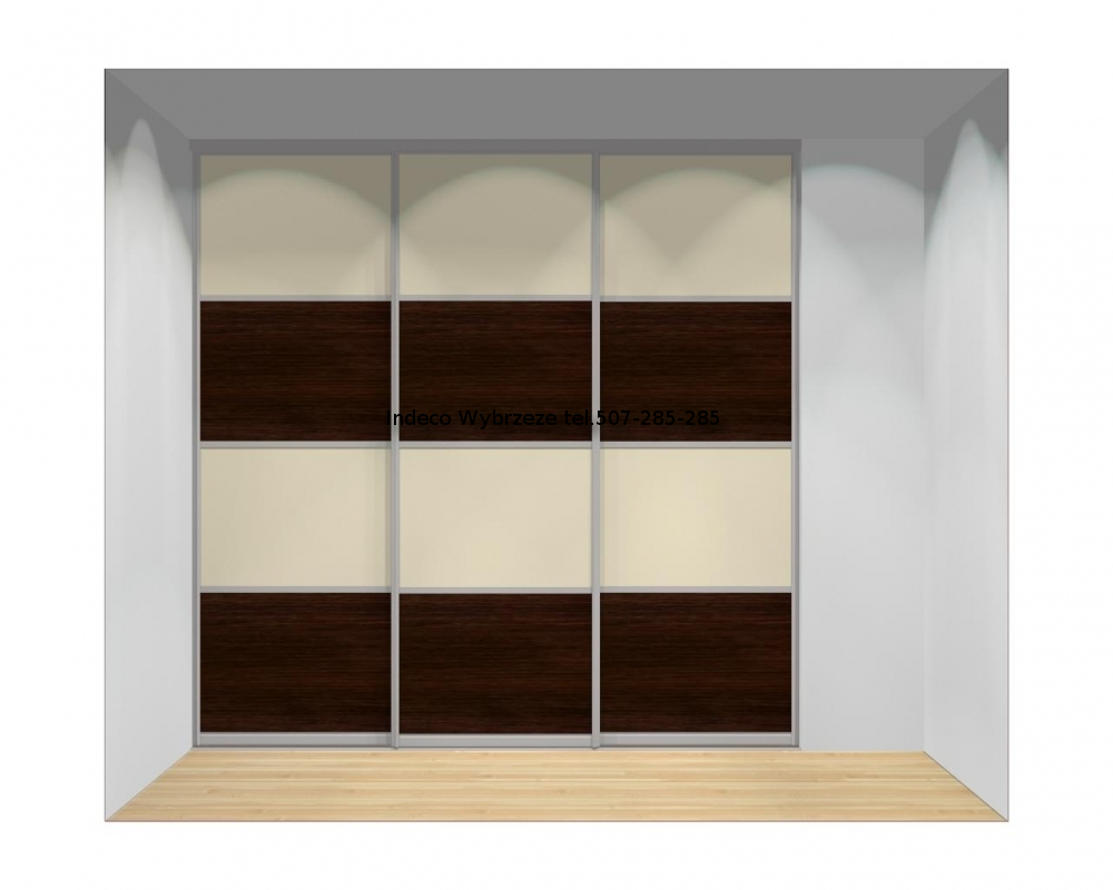 Drzwi przesuwane, 3-skrzydłowe do szaf o szerokości od 210 do 240 cm oraz wysokości od 240 do 263 cm.