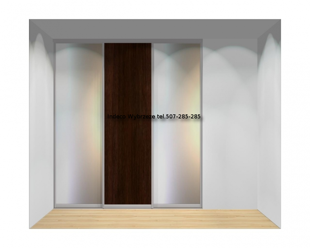 - jedno skrzydło z wypełnieniem z płyty meblowej, dwa skrzydła z wypełnieniem z lustra srebrnego.