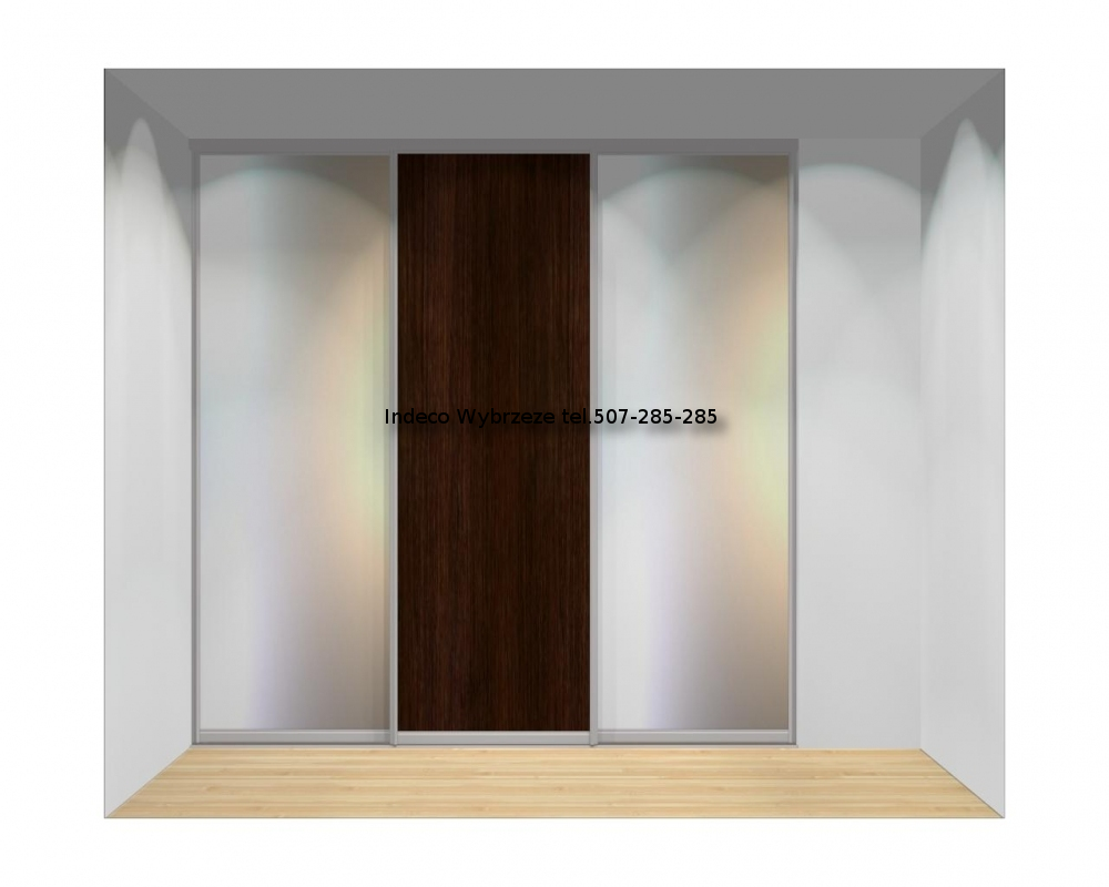 - jedno skrzydło z wypełnieniem z płyty meblowej, dwa skrzydła z wypełnieniem z lustra srebrnego.