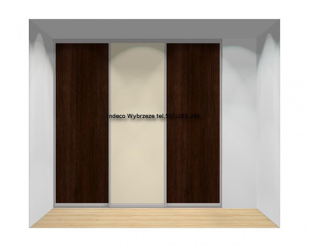 Drzwi przesuwane, 3-skrzydłowe do szaf o szerokości od 240 do 270 cm oraz wysokości od 240 do 263 cm.
