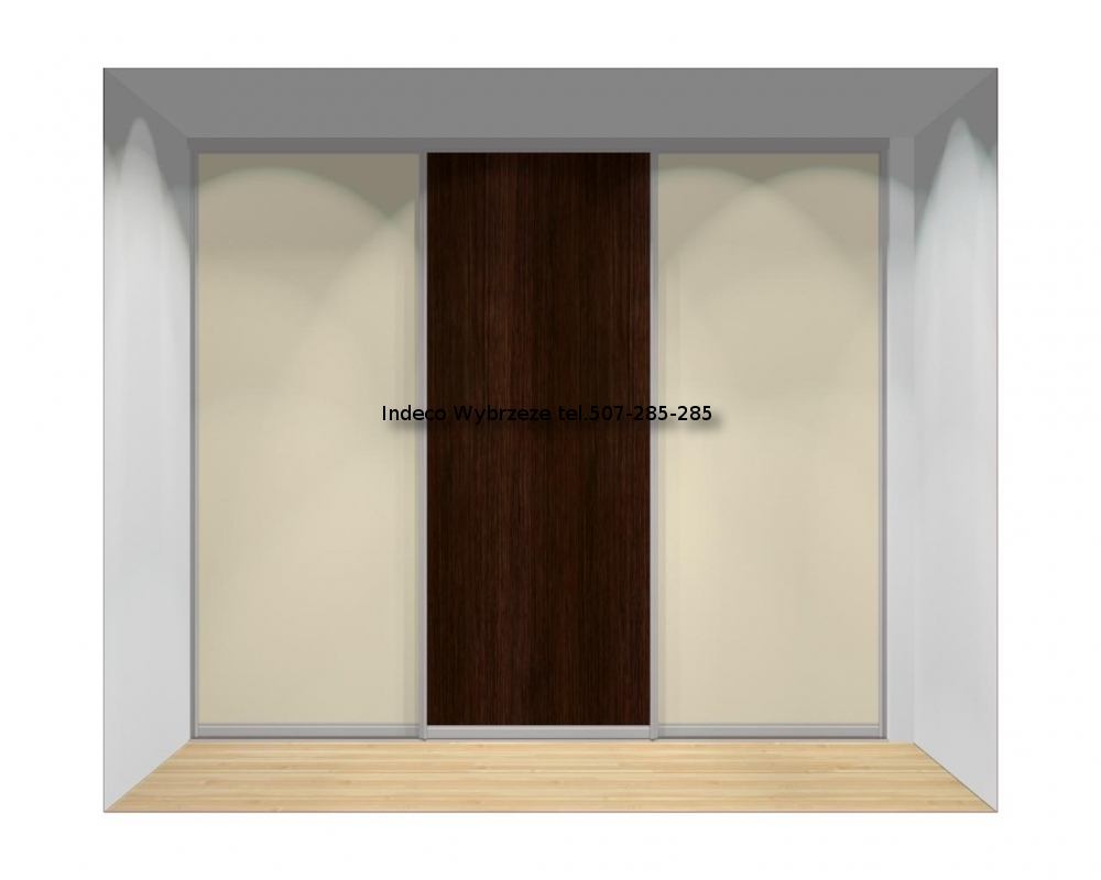 Drzwi przesuwane, 3-skrzydłowe do szaf o szerokości od 270 do 310 cm oraz wysokości od 240 do 263 cm.