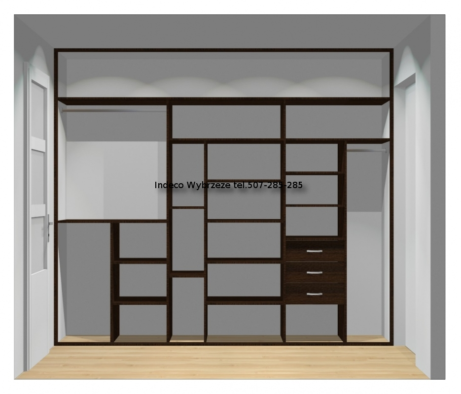 Zabudowa jest przeznaczona do użyktu z drzwiami przesuwanymi 3-skrzydłowymi.
