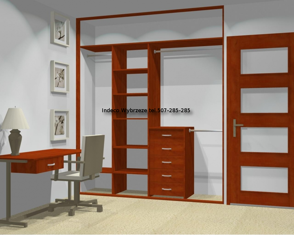 Wnętrze wykonane z płyty laminowanej grubości 18 mm w kilkudziesięciu dekorach do wyboru.