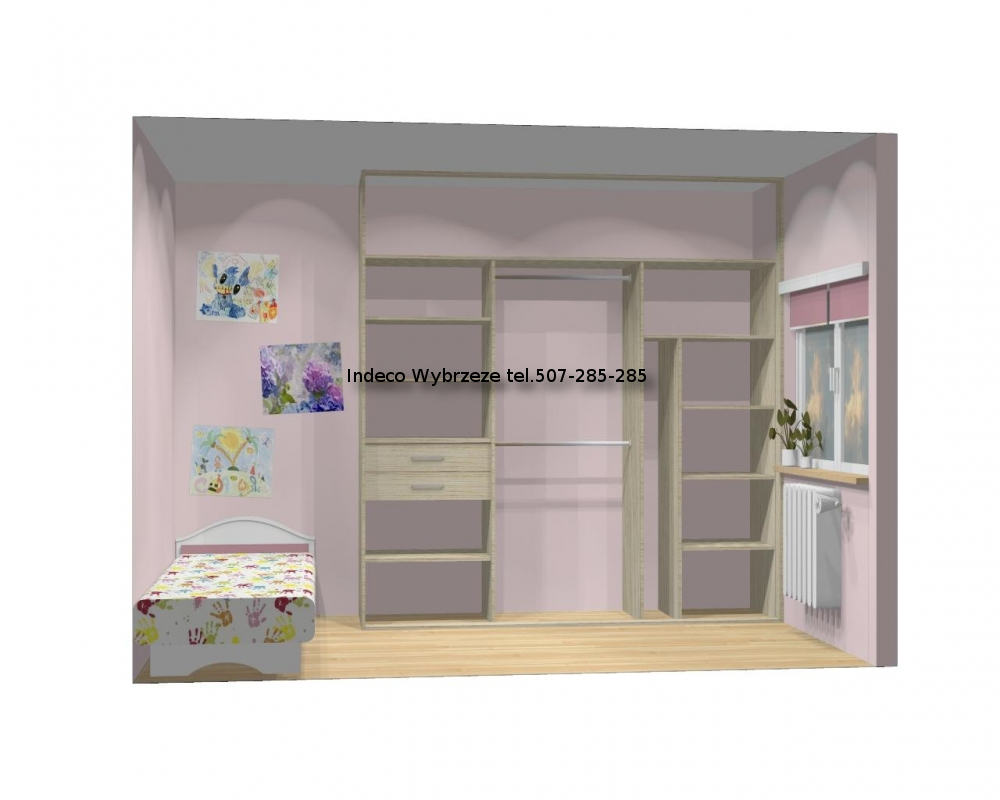 Zabudowa jest przeznaczona do użyktu z drzwiami przesuwanymi 3-skrzydłowymi.