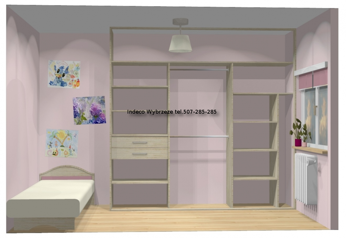 Zabudowa jest przeznaczona do użyktu z drzwiami przesuwanymi 3-skrzydłowymi.