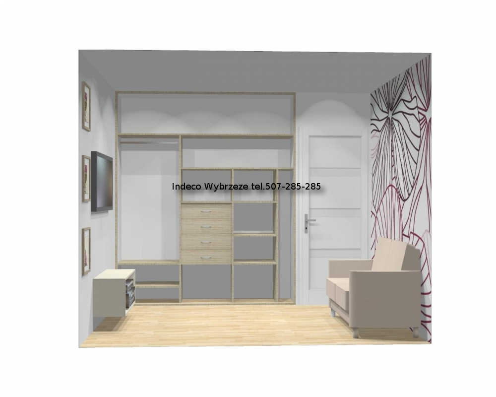 Zabudowa jest przeznaczona do użyktu z drzwiami przesuwanymi 3-skrzydłowymi.