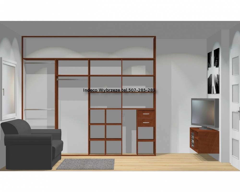 Zabudowa jest przeznaczona do użyktu z drzwiami przesuwanymi 4-skrzydłowymi.