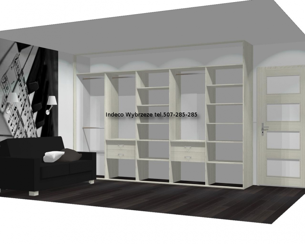Zabudowa jest przeznaczona do użyktu z drzwiami przesuwanymi 4-skrzydłowymi.