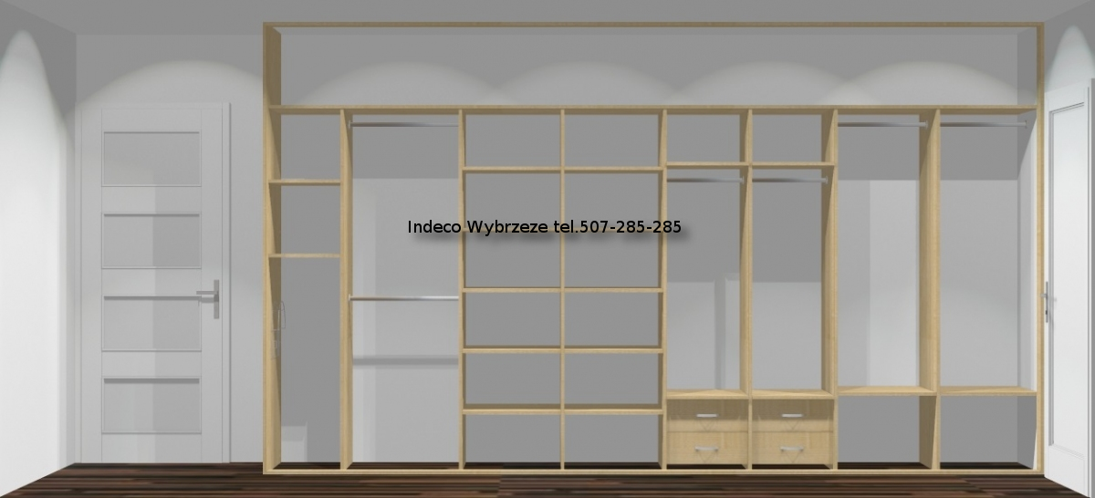 Zabudowa jest przeznaczona do użyktu z drzwiami przesuwanymi 4-skrzydłowymi.